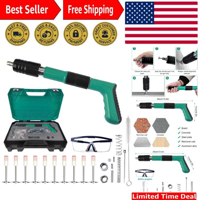 • Light Weight & Portable Our Manual Steel Nail Gun Power tool is light and convenient for you to carry and handle in various scenes, It comes with a double muffler as it’s designed with a thickened steel silencer that reduces noise and is safer.