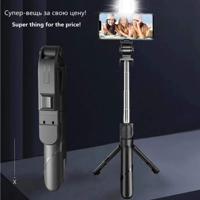 Bluetooth Extendable Selfie Stick with Wireless Remote for Making , Vlog Videos and Tripod Stand Selfie Stick for Mobile and All Smart Phones Three-in-one Compact selfie stick with Wireless Remote Control and integrated with tripod, with led light , product length up to 750MM, the range of the wireless connection can be up to 10 meters. New experience great for Selfies, Group Photos, Face-time, Life-logging, Video shooting, Social live.